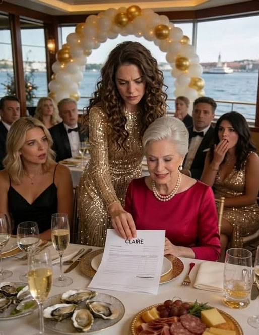 I stepped beside Evelyn and gently placed the printed bill on the table in front of her champagne glass.