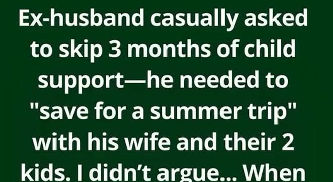 Ex-husband casually asked to skip 3 months of child support-he needed to “save for a summer trip” with his wife and their 2 kids. I didn’t argue…