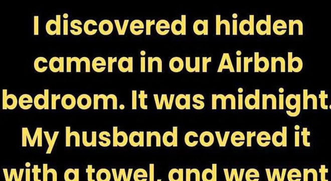 I discovered a hidden camera in our Airbnb bedroom. It was midnight. My husband quickly covered it with a towel, and we went to sleep.