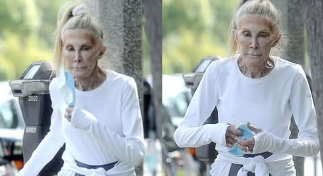 At 78 years old, Joan displayed a vitality that transcended her Hollywood fame. Watching her handle a parking meter with focused energy, dressed in casual athleticwear and tall brown boots, was a lesson in modern poise.