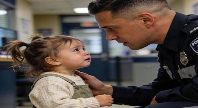 That afternoon, a young family stepped quietly through the station doors—a mother, a father, and their tiny daughter, no more than two years old. The child clung tightly to her parents, her cheeks flushed, her eyes swollen from crying. She looked exhausted, like she had been carrying something far too heavy for someone her age.