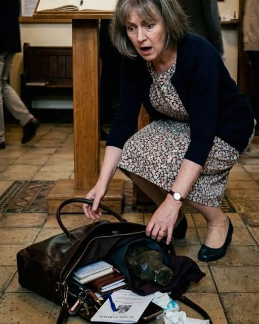 The officers arrived within minutes, their blue and red lights casting distorted, strobing shadows through the church’s ornate glass windows. They moved through the crowd with professional efficiency, taking the bag from my hands and looking at me with cold, suspicious eyes.