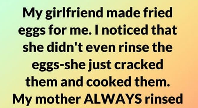 Later, when the sting had softened, he apologized. He explained that rinsing eggs wasn’t a rule—it was just something familiar, a small habit stitched into his memory. He hadn’t meant to criticize her. He hadn’t meant to compare.