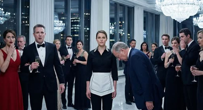 “You’re not attending as a guest,” he said, pulling a black catering uniform from the bag. “We’re short on staff. You can help serve drinks. It’ll look good.”