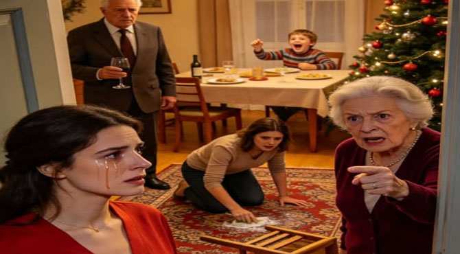 Sarah sat at the far end of the table, squeezed between her husband, Mark, and a drafty window. Her eight-year-old daughter, Lily, sat next to her, swinging her legs nervously. Lily was wearing a red velvet dress Sarah had bought at Target. It was cute, festive, and clean.