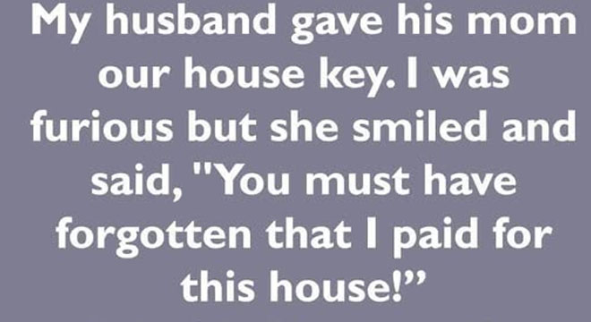 Natalie was shocked when her husband gave his mother their house key. When she objected, his mother retorted, “I paid for this house!” Her husband sided with his mother, leaving Natalie powerless.